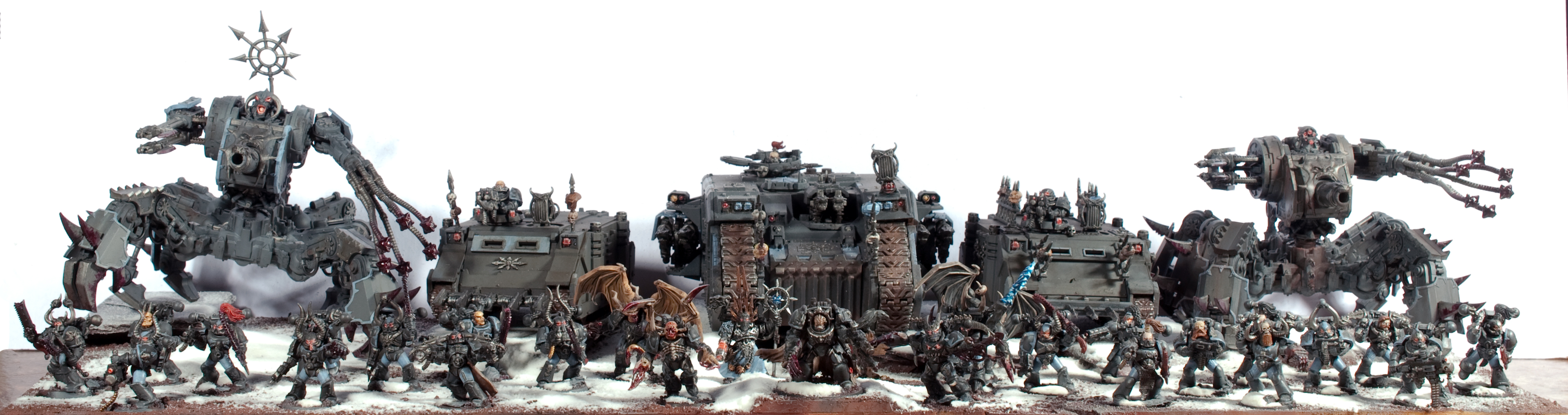 This army was a fun build as I didn’t actually buy it. Most of its components were living at my house for a while so I traded my two paintball guns for ownership of it. It wasn’t in the best of condition and I had to scavenge for parts to make 20 chaos marines. In the process of cleaning off the old paint and scrapping parts together, and or ripping parts off, a few mold lines may have been missed as it turns out. I’m not too worried, the over all army looks good and the small imperfections aren’t too noticeable.