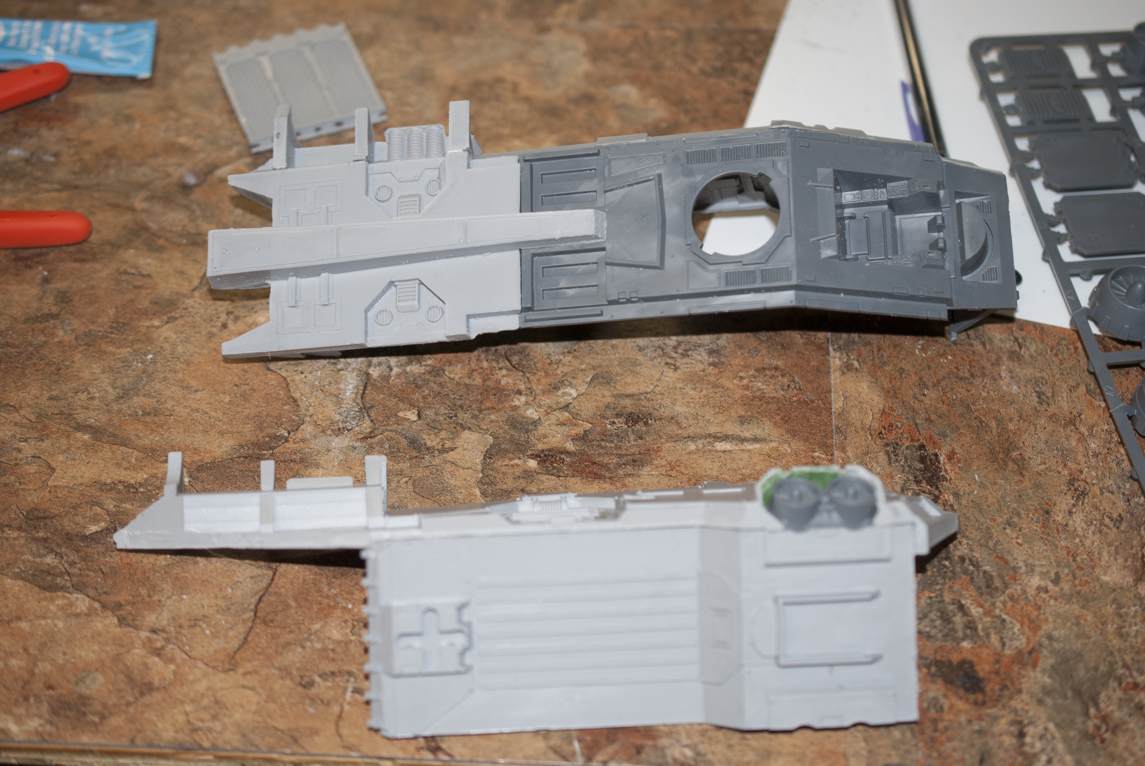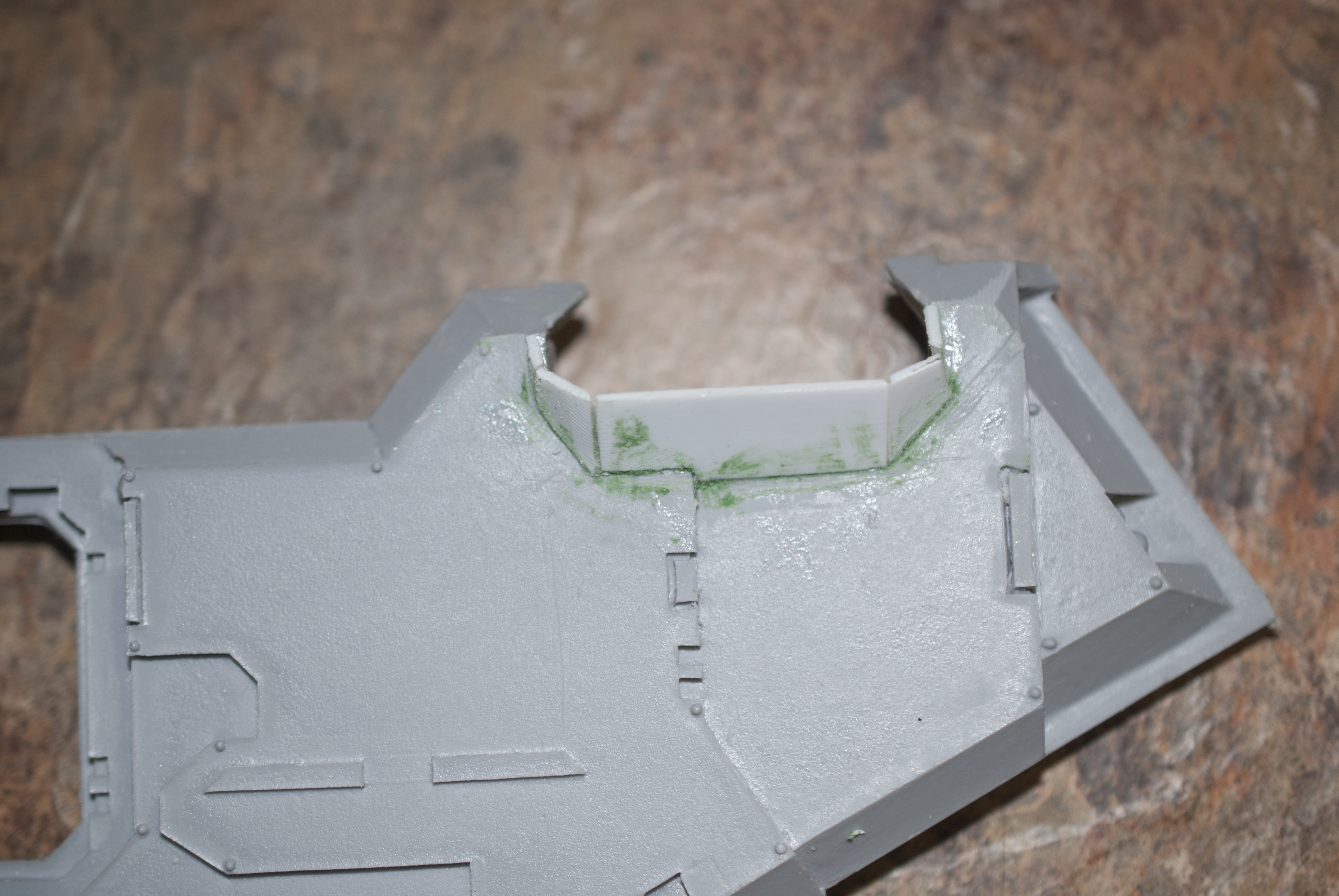 Anyways, I contacted forgeworld hoping to at least get a new left side panel and some lascannons, cause oh yeah, they sent me two of the same sides. Its been quite a few days, and I still haven’t heard back. Considering they have Gamesday Germany this weekend and GenCon in Indy next weekend, I don’t anticipate hearing from them any time soon. So I decided to fix the problems myself!